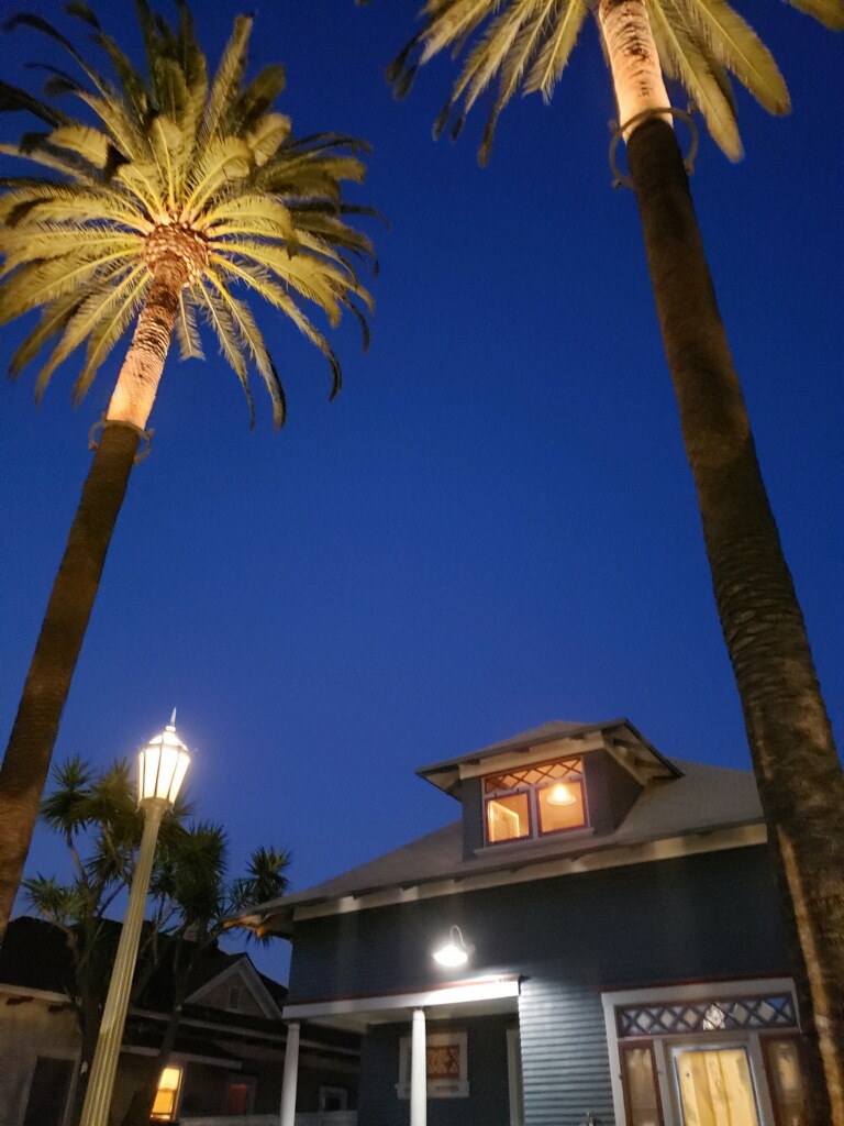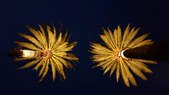 You can point the spotlights up the fronds, down the tree trunk, or even at a subject down below. (fountain or walkway)